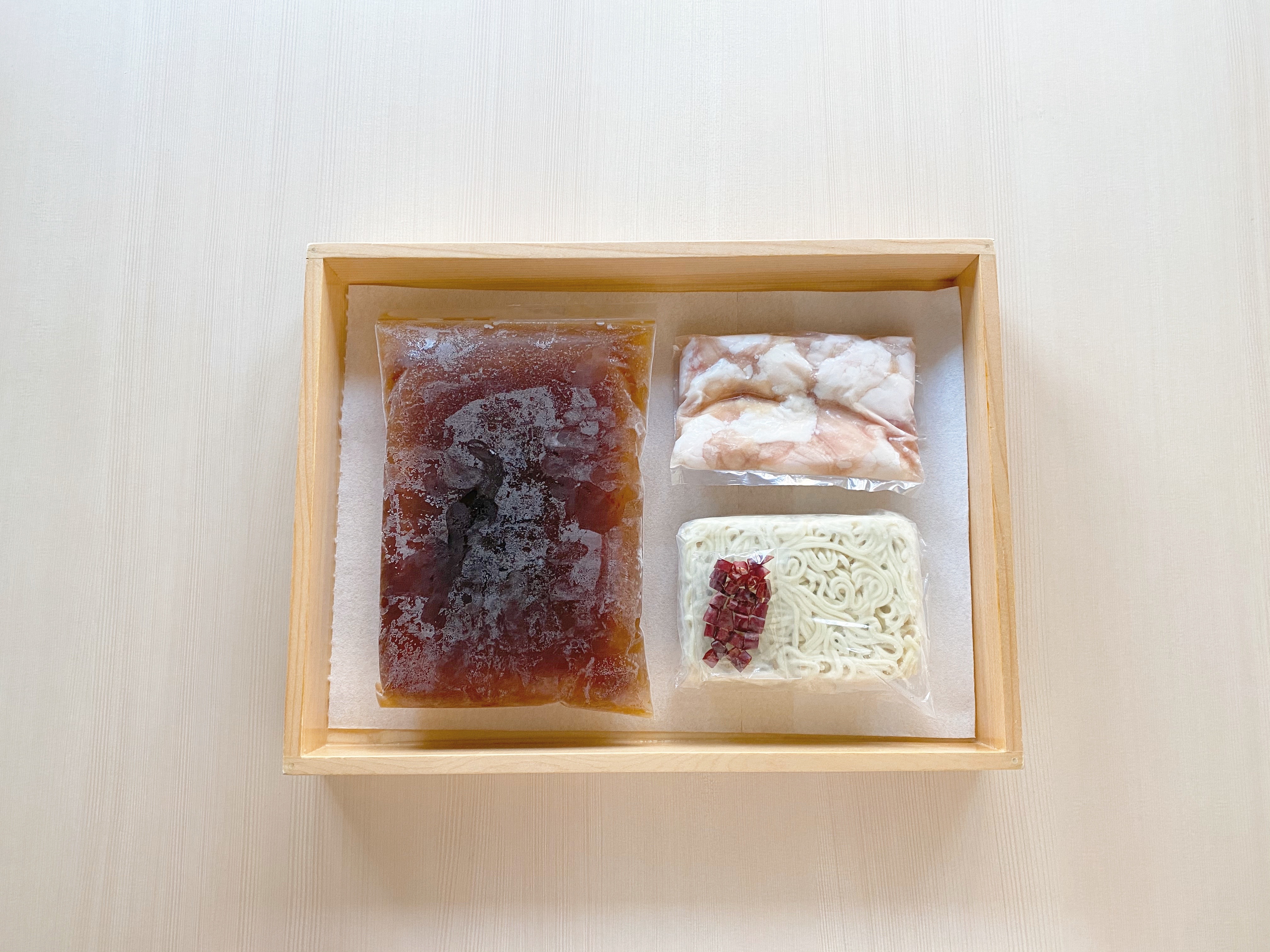 牛骨スープ(国産)、醤油、調味料(アミノ酸等)にんにく、アゴ(トビウオ)エキス、昆布エキス、鷹の爪、ちゃんぽん麺、酢酸Na、グリシン、保存料(ポリリジン)